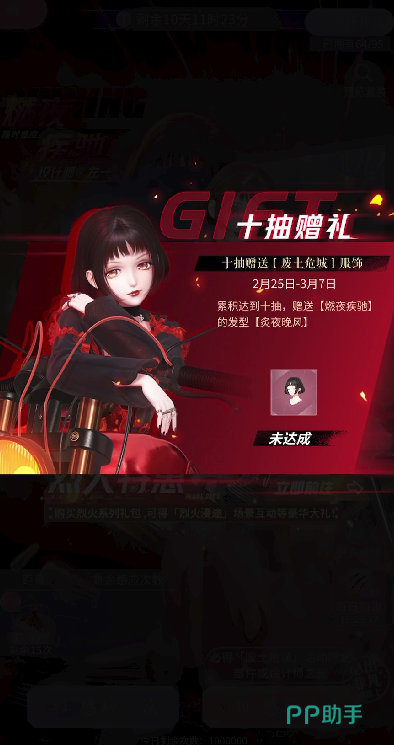 废士危城卡池是游戏在2025年2月25日会开启的一个主题活动,在该活动之中,玩家可以参与限时感应,并且有概率能够获得非凡性感套装“燃夜疾驰”,值得一提的是,玩家的在卡池之中如若抽中的是“燃夜疾驰”的碎片,那必须囤积十个碎片,才能够进行套装兑换。
