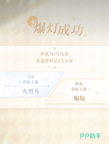 说到积分,在游戏过程中你还能使用“爆灯”功能,这是你提前指认卧底的机会。爆灯一旦启动,你就能直接选出一位你认为最可疑的玩家进行挑战。如果指认正确,你将获得额外的积分奖励。如果失败,那么你也不会一无所获,至少还能获得一些活动积分。不过,爆灯功能并不是随时能用的,每个玩家只有一次机会,得慎重操作哦。