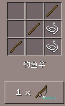 1.首先先做一根钓鱼竿,需要的原材料是:3根木棒+2根线。