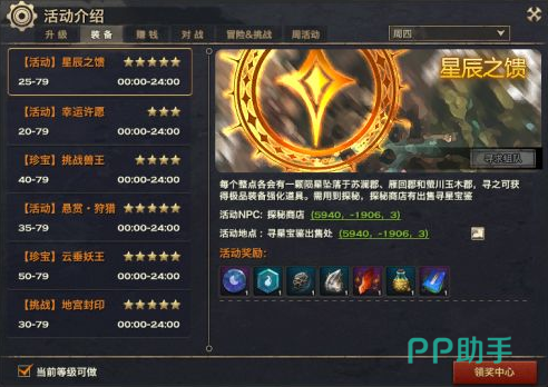 星辰之馈是游戏中一个独特的休闲活动,和游戏中的挖宝玩法结合起来,但是又比挖宝更加有竞争力,比较考验每个玩家对于地图以及点位的熟悉程度。大家在副本PVP之余不妨参与下星辰之馈玩法,说不定会有意外惊喜呢。