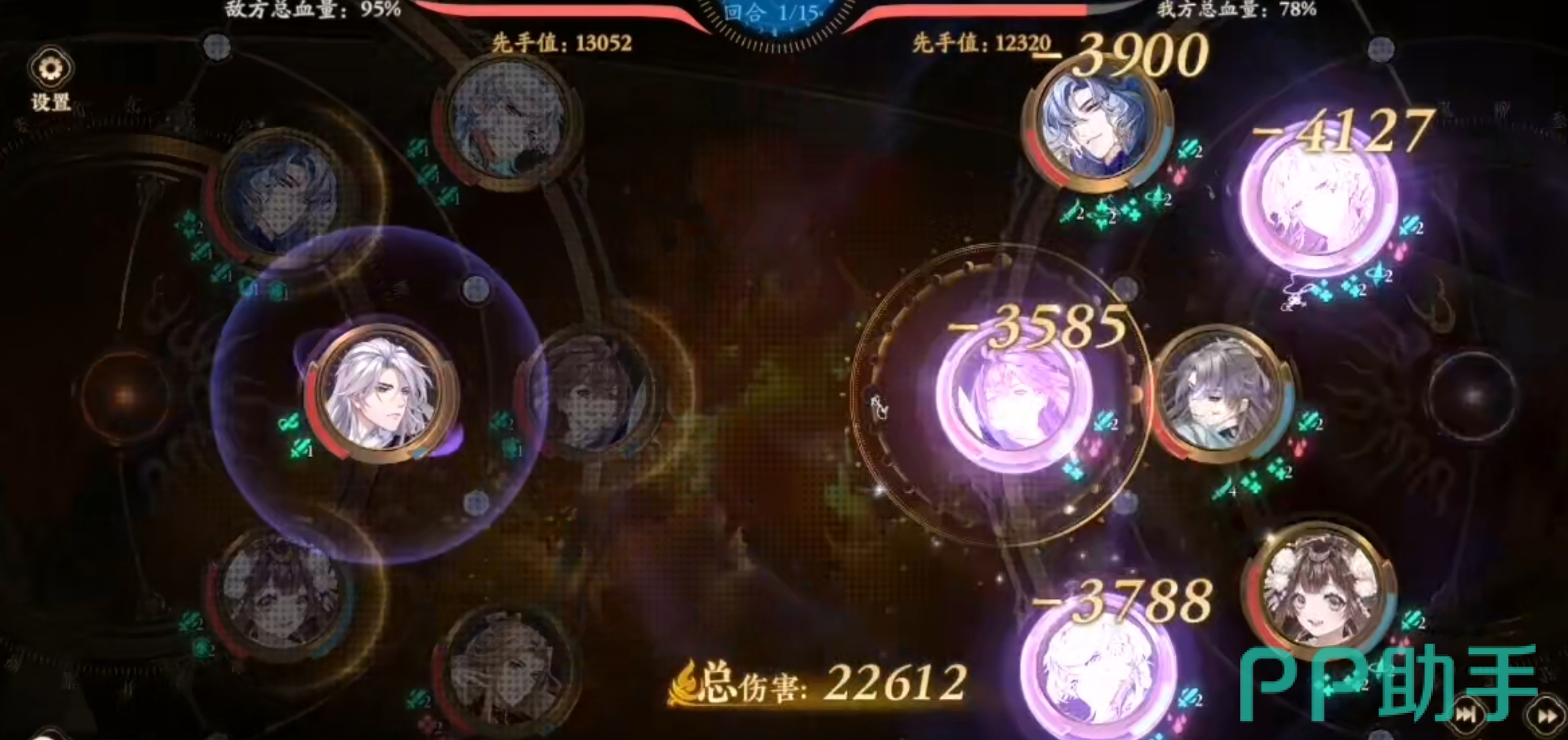 宣行之在找到敌人弱点处就会使用诲人不倦技能攻击,造成群体120%的怒气伤害,使战力最强的两个敌人得到光暗之刻,就会极大的降低敌人的命中率和战力,而且没有任何免疫的技能可抵挡,诲人不倦最高怒气伤害可提升到145%和百发百中的光暗刻印。