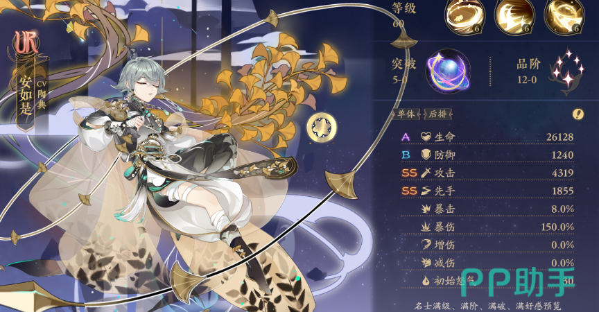 通过基础的面板属性来看,这个角色属于一个单体爆发伤害非常高的伙伴,自身的爆伤属性就高达150%,比较适合放在后排位置进行战斗!安如是在释放主动技能【锐刃】可以让普通伤害获得一个提升,而且攻击之后,有一定的概率在一次对敌人发起一次攻击,这个追击效果概率只有50%,但是一半一半的话,还是很推荐大家去养成的!