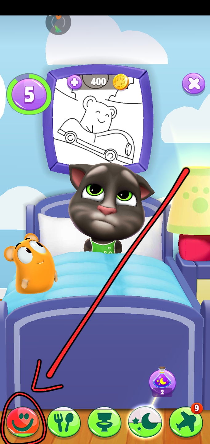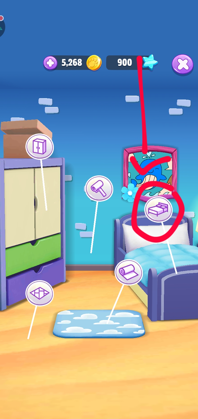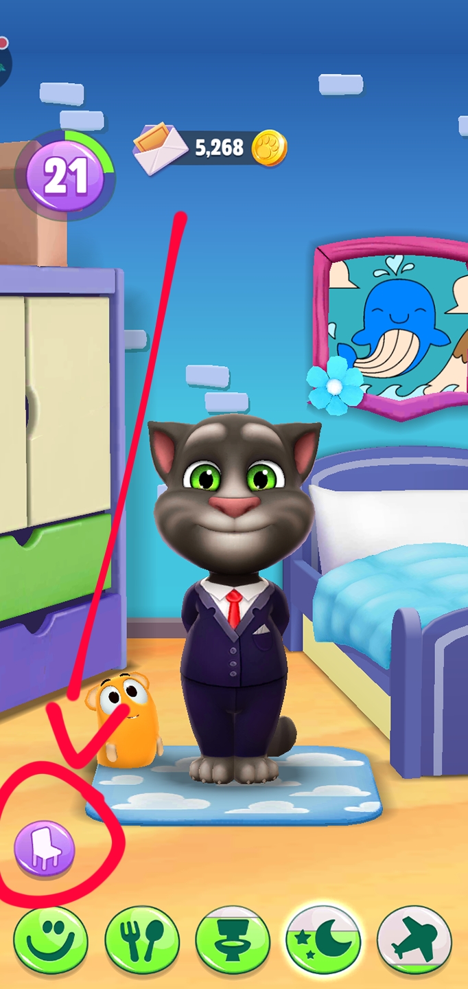 首先,我们要选择汤姆猫脚下五个选项中的第四个——卧室。