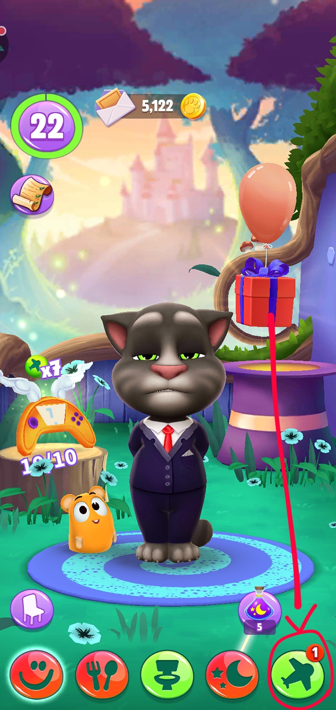 首先我们要点击汤姆猫脚下的五个选项中的第五个——飞行室。