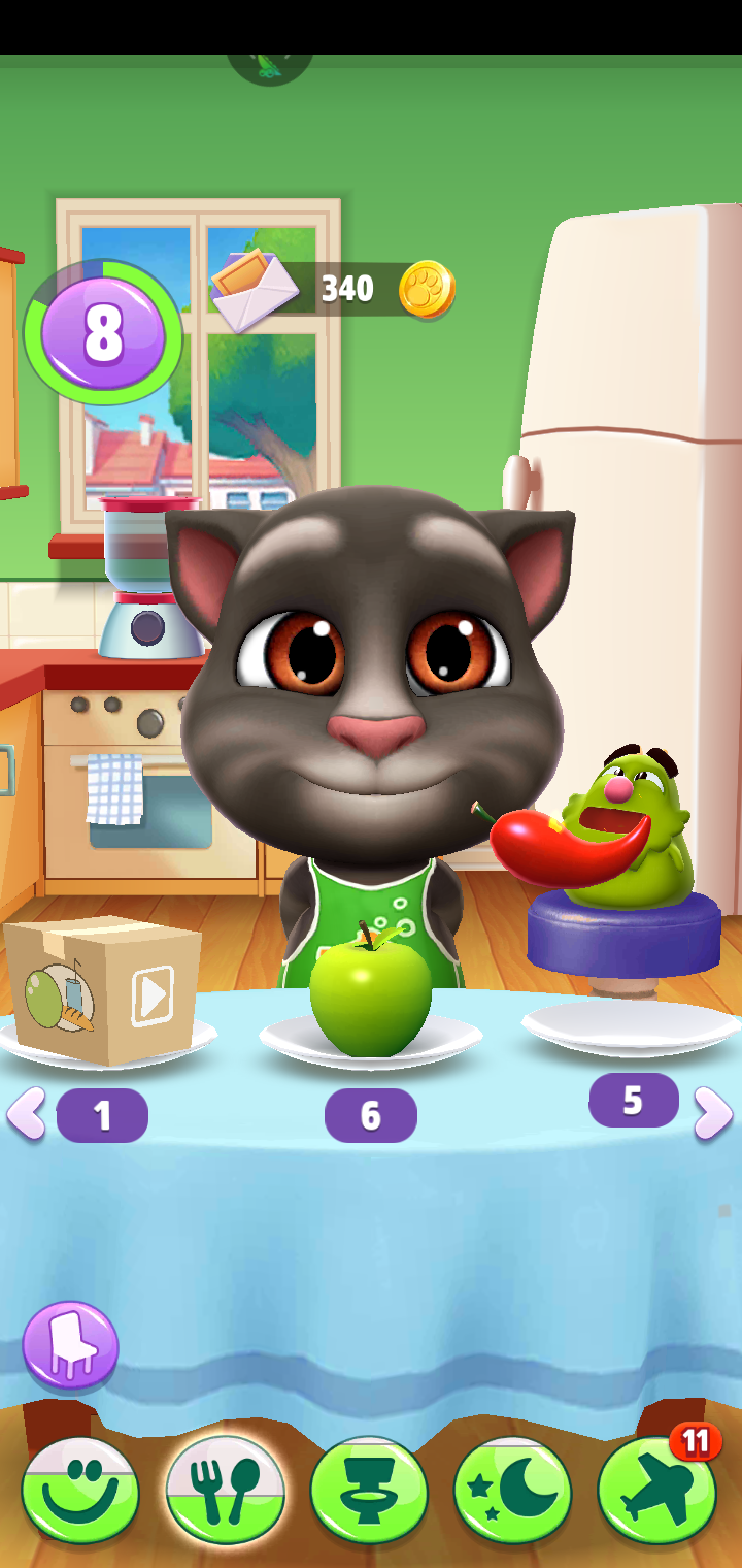 我的汤姆猫2这款游戏的主要内容是照顾一只汤姆猫宠物,而想要照顾好汤姆猫那肯定要给汤姆猫喂食。喂食的地方在厨房,给汤姆猫吃食物从而减少饥饿值,增加经验值好快速升级。汤姆猫所吃的食物都是要买的,若是没有食物了就点击汤姆猫身后冰箱,冰箱是商店的入口,可以在商店里买到汤姆猫所需的食物。