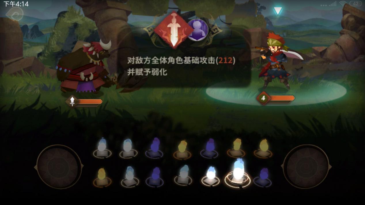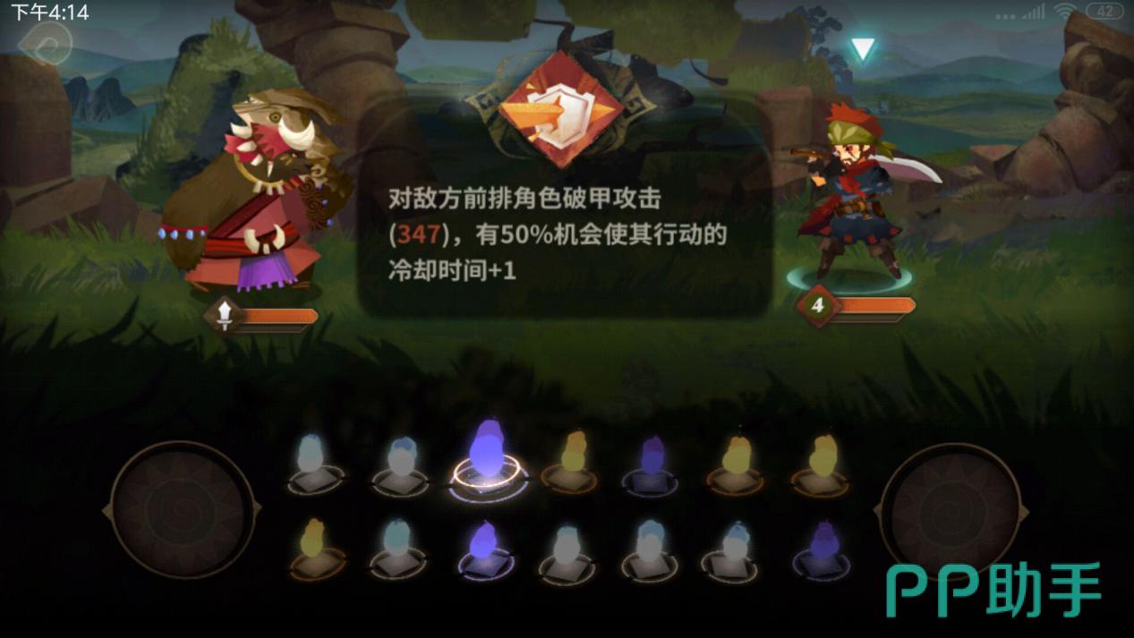 在这个关卡中,我们可以使用自己的1技能来为自己增加强化效果,同时也要注意敌方的攻击cd,如果在敌方还剩1回合使用这个技能,那就会受到敌方带有强化的伤害,因为这个关卡的敌人有4个,虽然攻击不高,但被同时攻击还是非常痛的,我们也可以使用这个角色2魂技能不断打击敌方的前排。