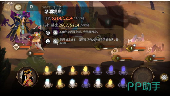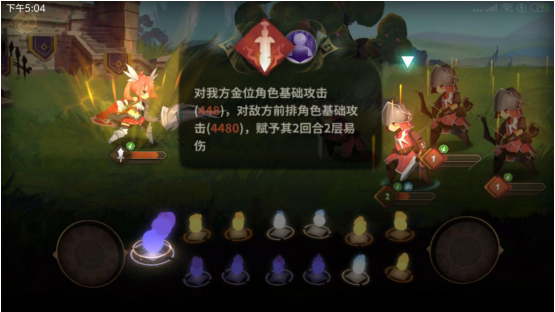 在第一波战斗中,我们可以使用的角色只有一个,那就是我们的公主安洁。公主是一个白位的辅助角色,她的1魂技能可以对我方前排叠加护盾,同时也可以触发被叠盾角色的1魂技能。由于第一波战斗中我们只有公主一个角色,所以我们的前排只有我们公主自己,因此,我们使用1魂技能时,可以再触发我们公主的1魂技能,再次为自己叠加一次护盾。