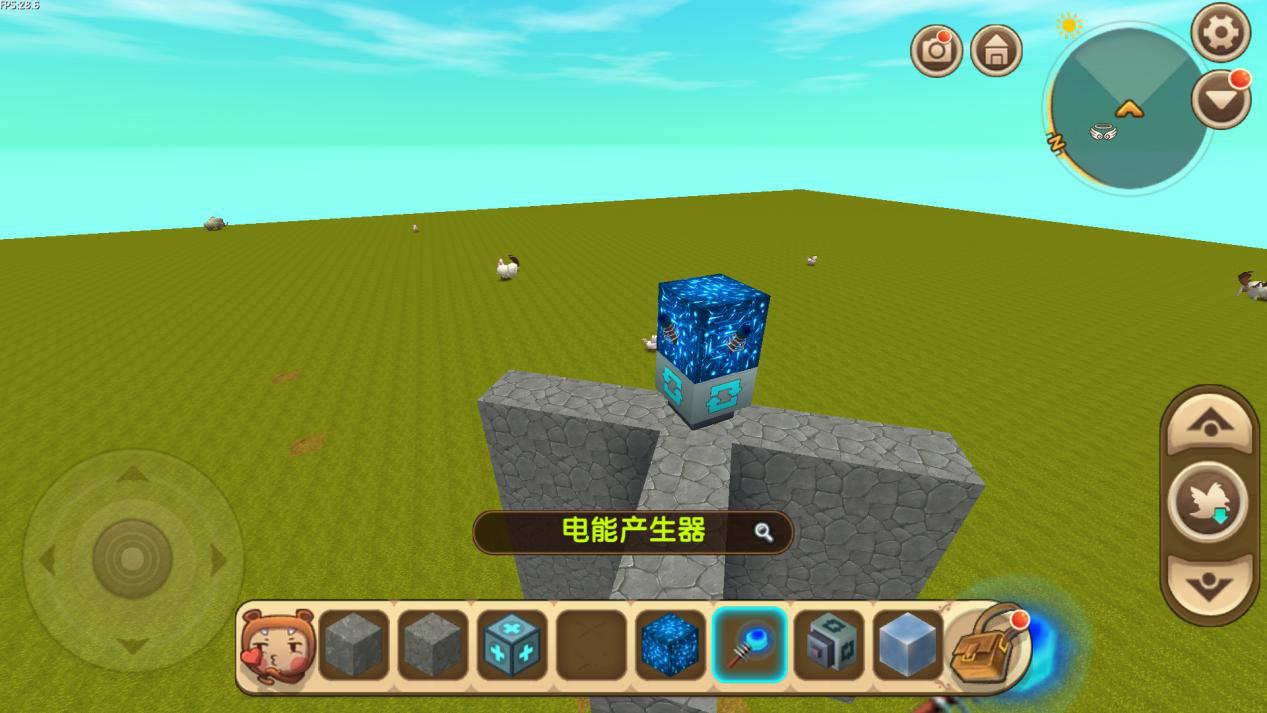 以上步骤都完成之后就该最后一步啦!最后一步就是将电能器安装上,这个电能器可以为旋转装置提供能量,而且它的数量与位置都是不限的,玩家们只要将它安装上电能块上就好了。电能块有一个“显示器”,只要点亮就可以旋转啦!