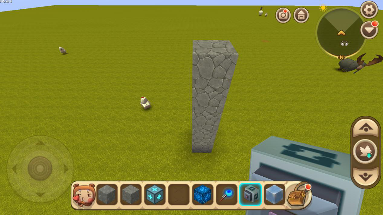 首先,玩家们需要寻找一片空地,然后开始制作旋转中枢。旋转中枢可以使用的材料也有很多,小编建议小伙伴们还是以石制为主,这样会更加便捷。玩家们需要先按照图中所示,将石块呈竖型搭建起来,它的高度可以不限制,不过小编建议它的高度不能高出十个方块以上。