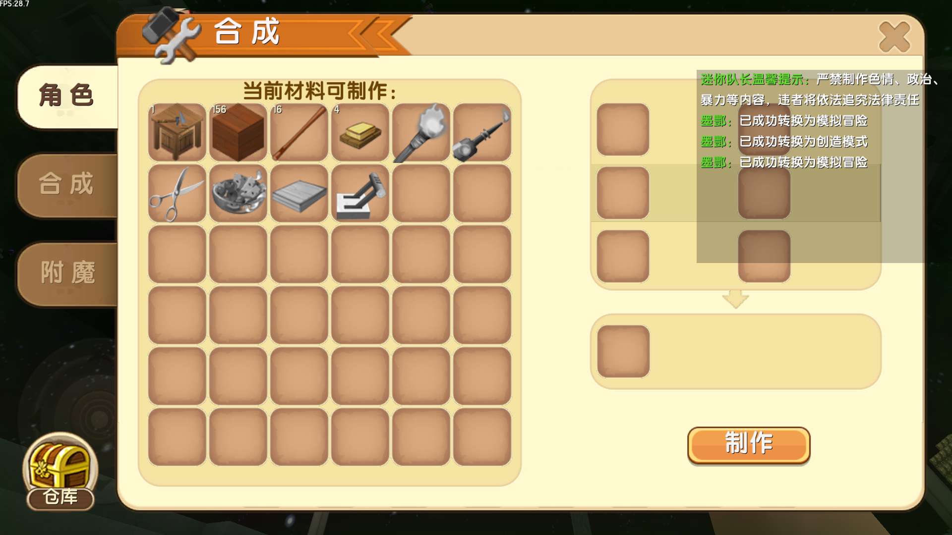 这里表面看起来高级模式似乎是无法点击的,实际上是可以的。只是故意设计成浅色而已。这里也可以看出来迷你世界似乎不希望玩家更改冒险模式的设置,因此才在更改设置中设下重重阻碍。