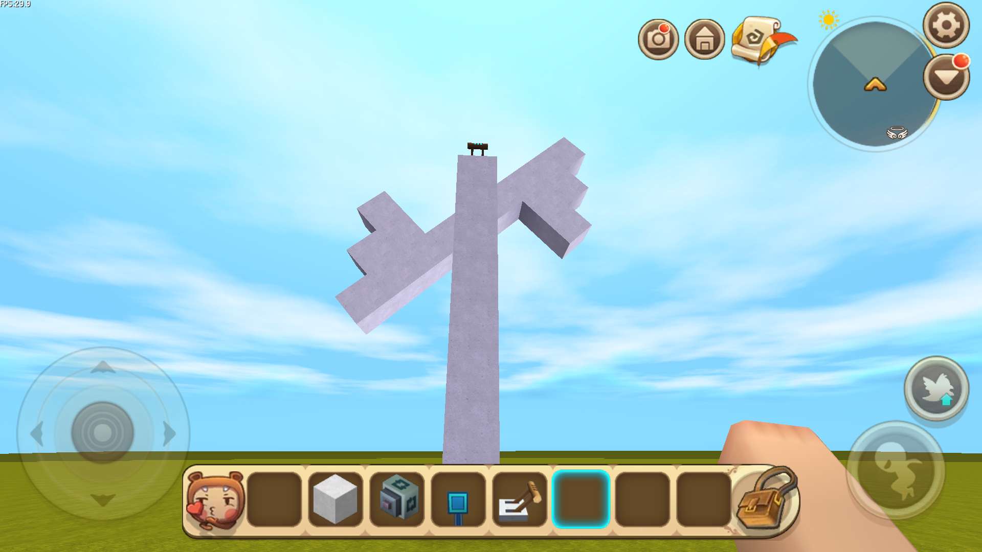 建造风车首先需要在一个足够空旷的地方,将建造风车的白色硬砂块放上去,建立成一个高度适当的柱子。