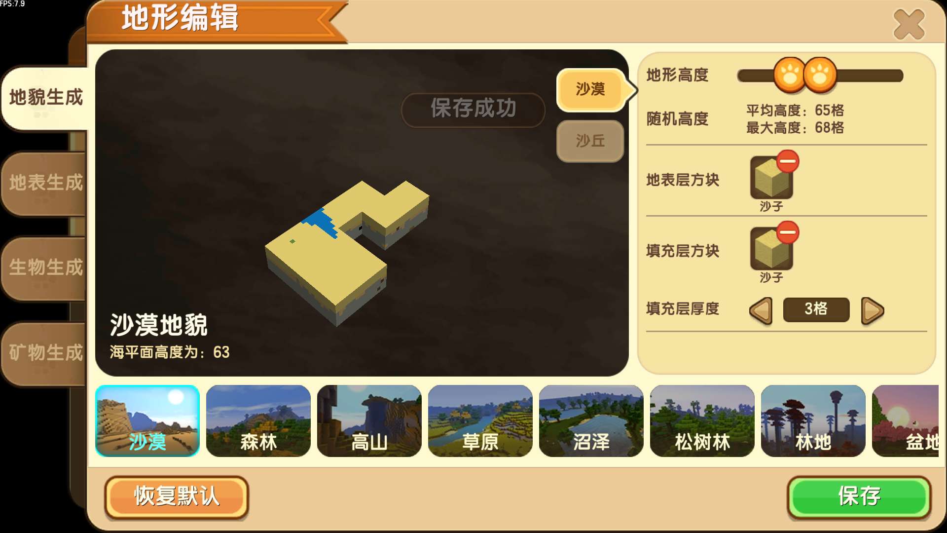 地表生成主要是设置各种植物的生成,生物生成则是设置各种生物的生成,矿物生成则是地下矿物的生成。这些都不用管!