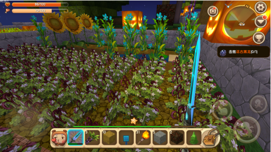 用锄头对土地进行整理,随后就可以将土豆与胡萝卜放在土地中,等待一段时间之后,作物就会自然成熟。一般催熟作物会有这几种方式,可以在作物的周围放置一个南瓜灯,可以有效促进作物快速增长。