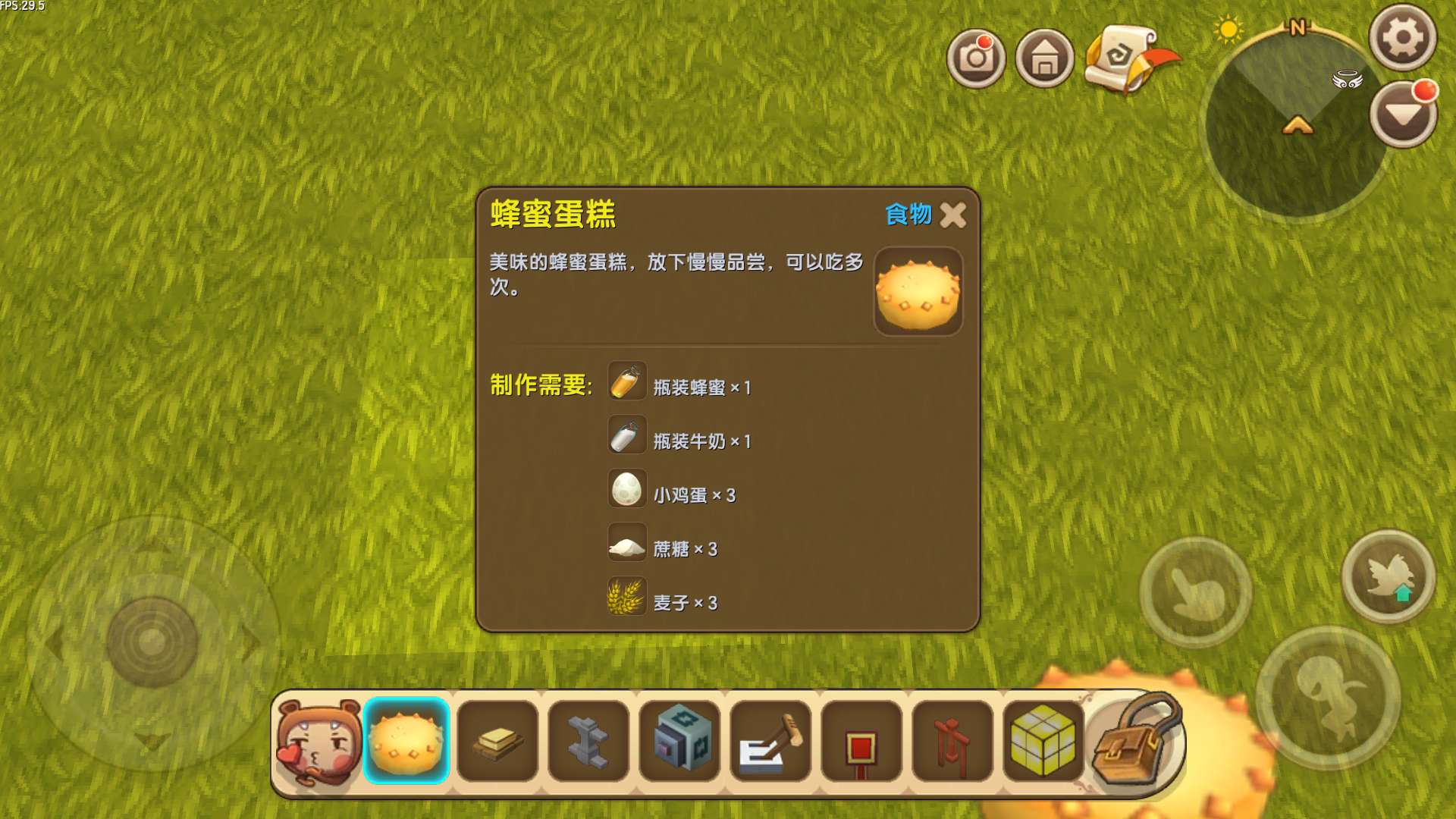 看起来似乎十分复杂,但实际上蜂蜜蛋糕的难处只在于瓶装牛奶和瓶装蜂蜜的获得。不过当小编介绍完,各位玩家就会发现迷你世界蜂蜜蛋糕其实并不复杂。