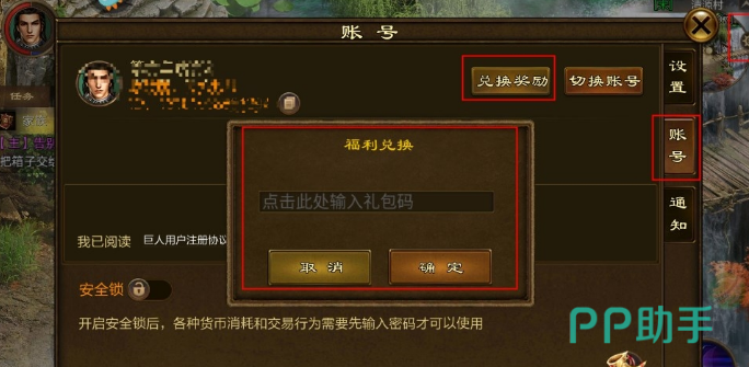 首先各位小伙伴先点击主界面,主界面的左上方会有一个人物的头像,大家直接去点击这个头像就可以了,头像图标之后就会出现一个信息和弹窗,在这个弹窗里面就可以看到大家想要的兑换按钮了。将按钮点击之后就能够看到一个输入框,输入框下方就可以输入手中的兑换码,就能将礼物兑换回家。