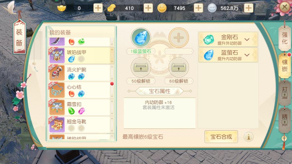首先是防御属性的提升,在本次的十绝阵中,敌人的攻击属性都为外功攻击。所以玩家在选择装备的时候要以血量和外功防御为主,同时镶嵌的宝石要选择龙血石和金刚石来提升自己的防御能力,可以较好的应对本次受到的伤害。