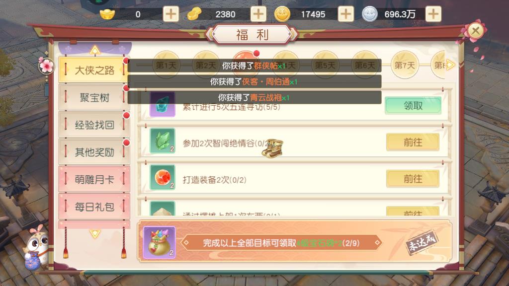 15.奇遇任务经验:成为神雕侠侣的顶级玩家