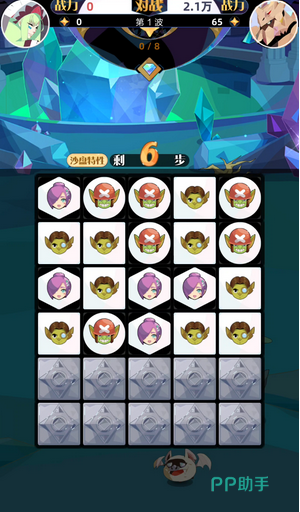 阵容确定之后,就要清除这一局的游戏思路了。小编建议先进行一些普通的消除,然后将这些消除之后产生的角色集中起来,并且疯狂积攒能量,再使用特殊技能产生一个新的领域,最后再拖出这个角色,这个时候我们就拥有了紫色的角色,在战斗阶段基本就是稳赢了。
