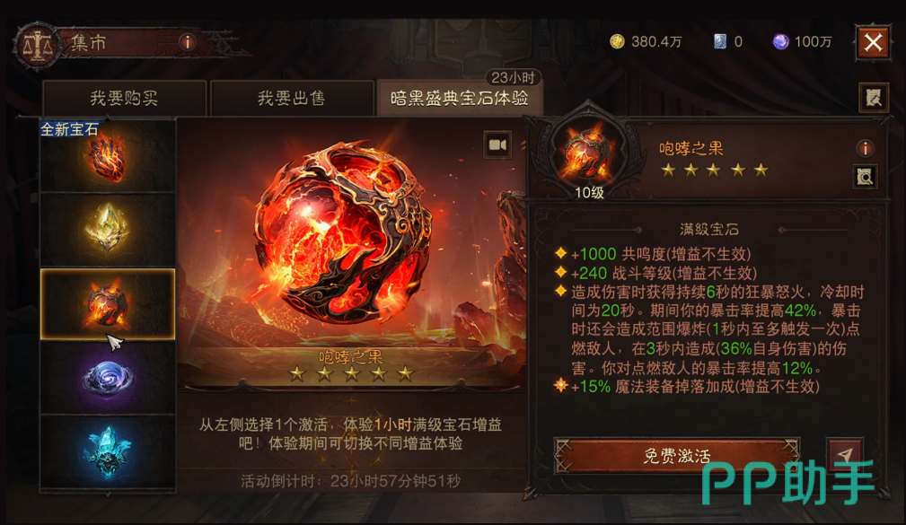 活动期间,只要玩家登录游戏,就能够领取一系列庆典奖励。首先,所有参与活动的玩家都能免费获得“暗黑盛典III·头像框”,以此纪念这场特殊的周年庆典。此外,玩家还将获得一颗随机1星传奇宝石,并且能够体验满级五星宝石的使用效果。在集市管理员处,玩家可以选择一颗满级五星传奇宝石进行1小时的免费体验,期间可以在五款已满配的五星宝石之间自由切换,感受宝石带来的不同属性加成。