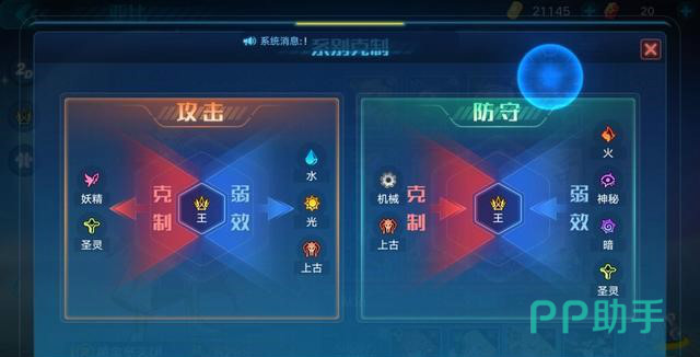 2、在防守时王系被机械、上古克制。火、神秘、暗、圣灵属性的亚比被王系克制。