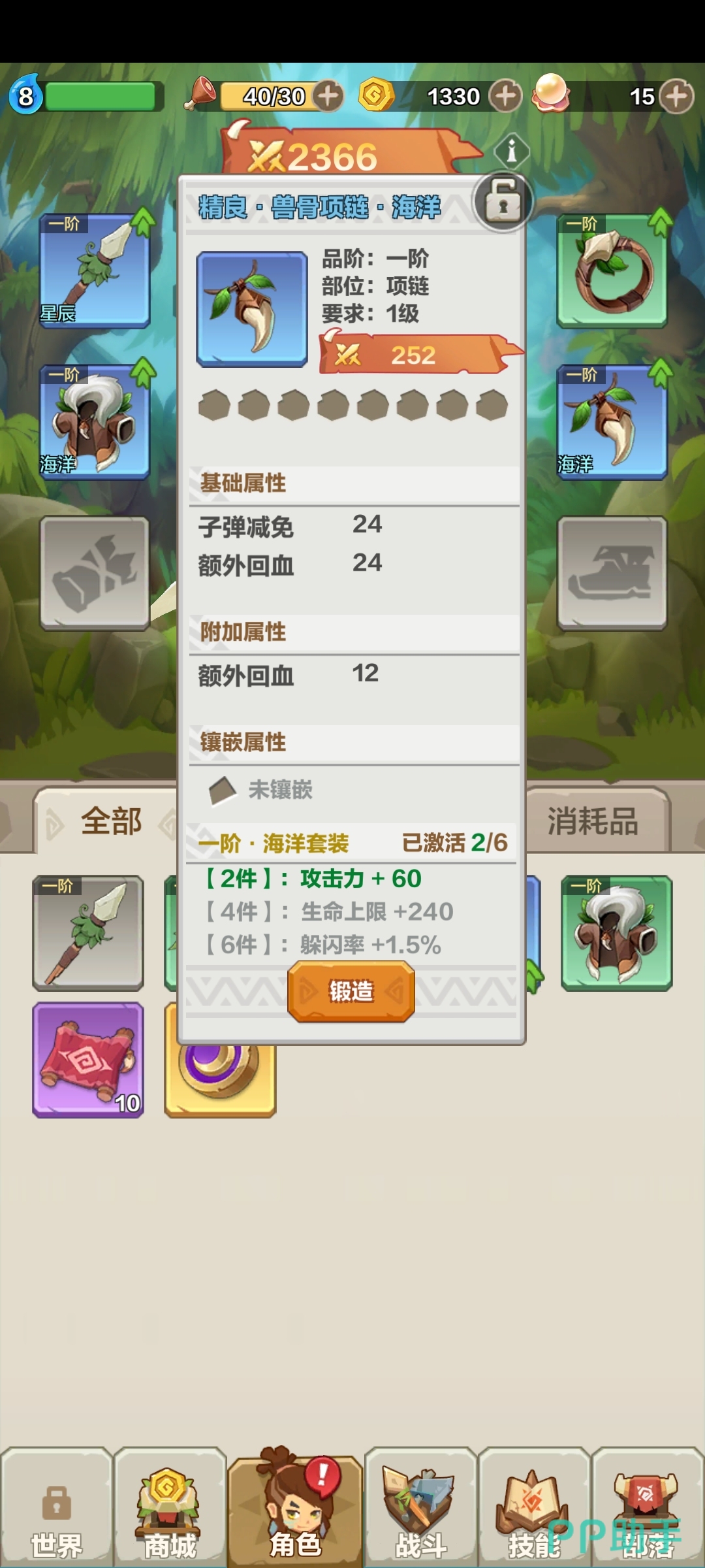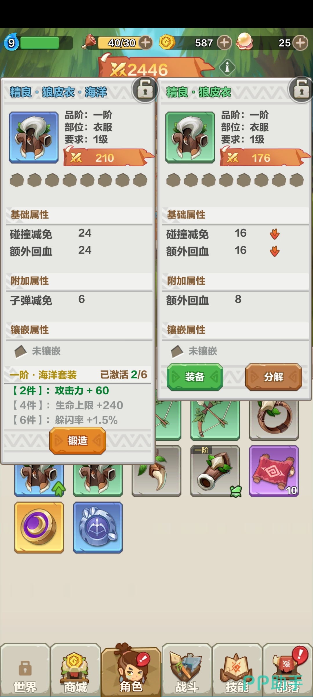 精良狼皮衣海洋:拥有海洋套装加成,2件套装激发攻击力加成60点;4件激活生命上限增加240点;6件激活闪避率加成1.5%。