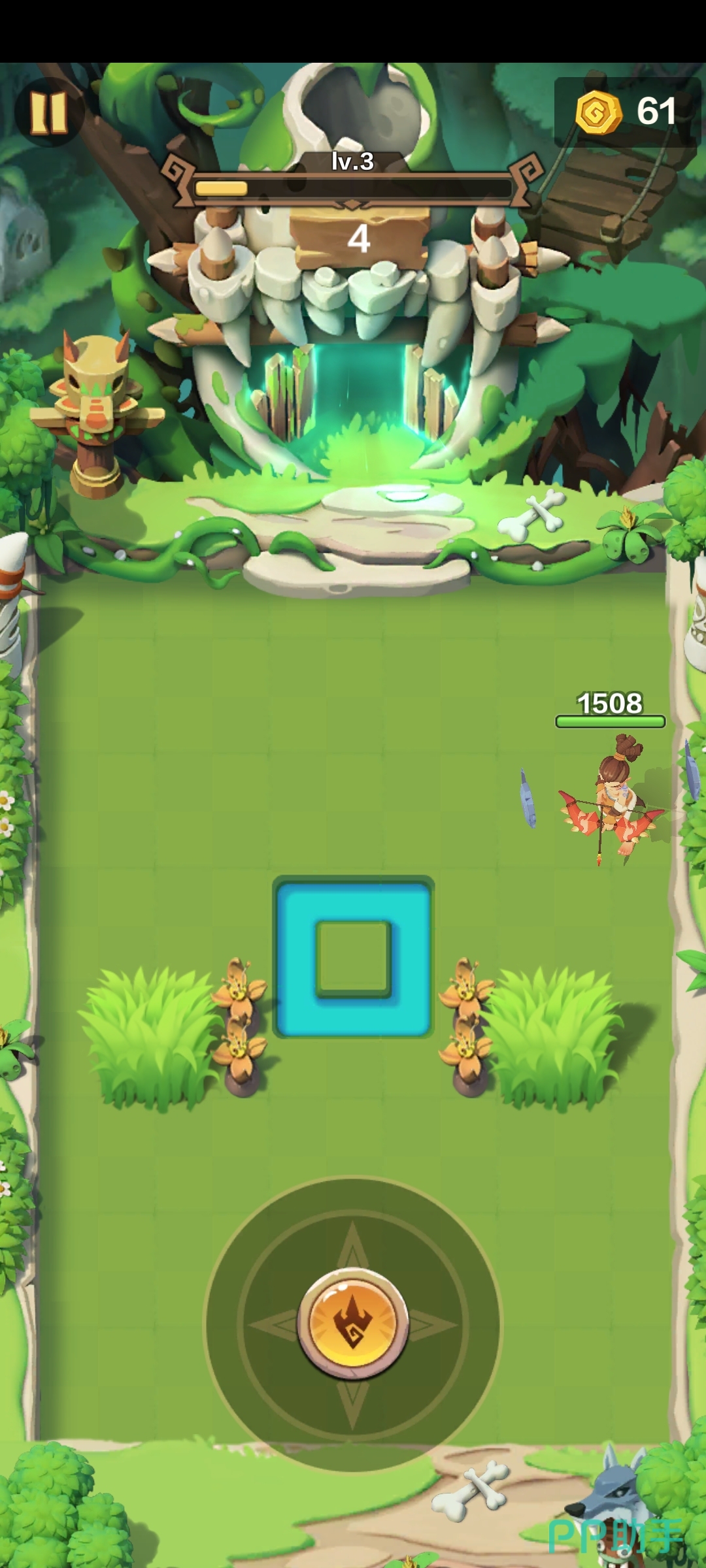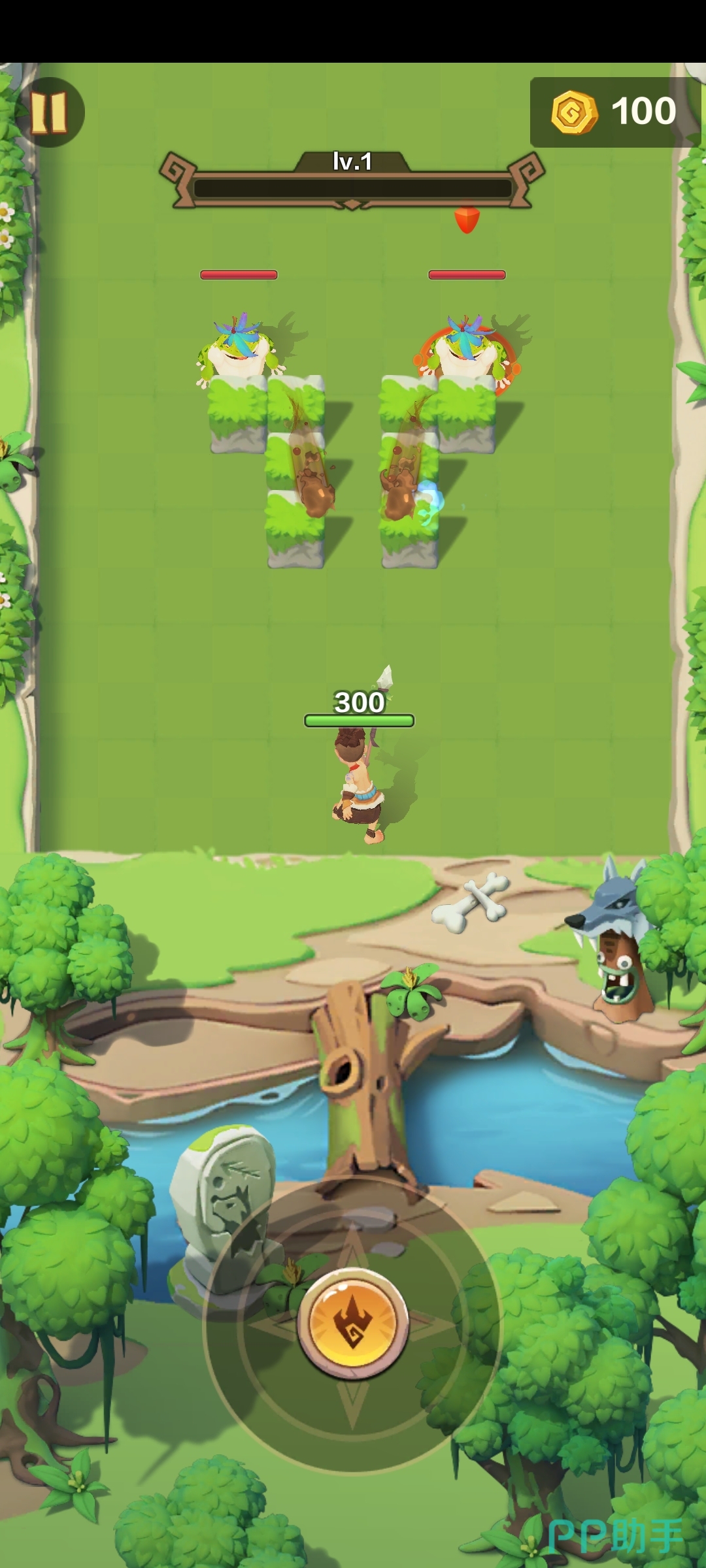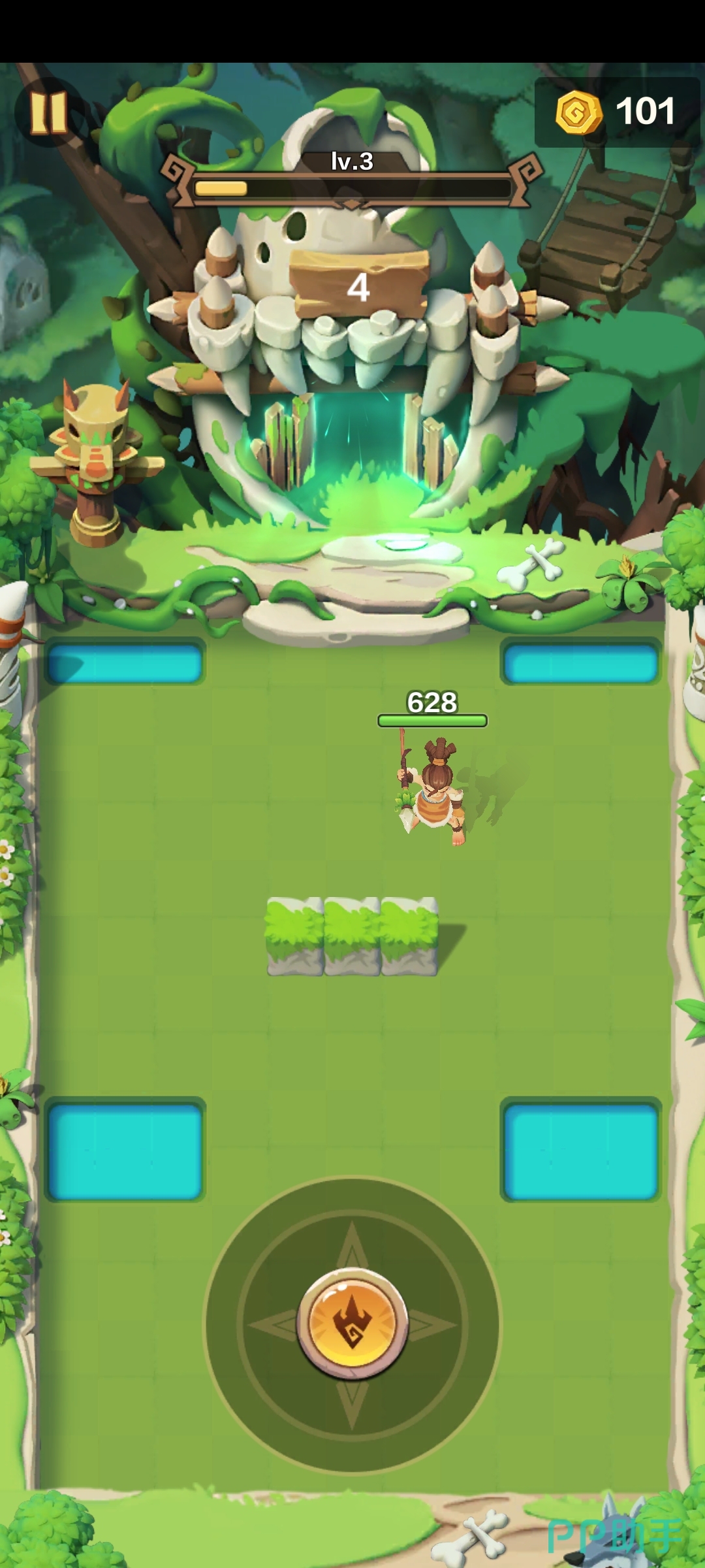 通关上玩家们操作屏幕下方的移动按键就可以操作角色移动,我们的角色会自动攻击野怪,玩家们只要装备了这些装备通关第四关并没有任何难度。因为第四关一共只有两个弓箭手,他们的攻击会提示弹道,玩家们只用避开红色攻击线就可以躲避伤害快速击杀两人既可通关!