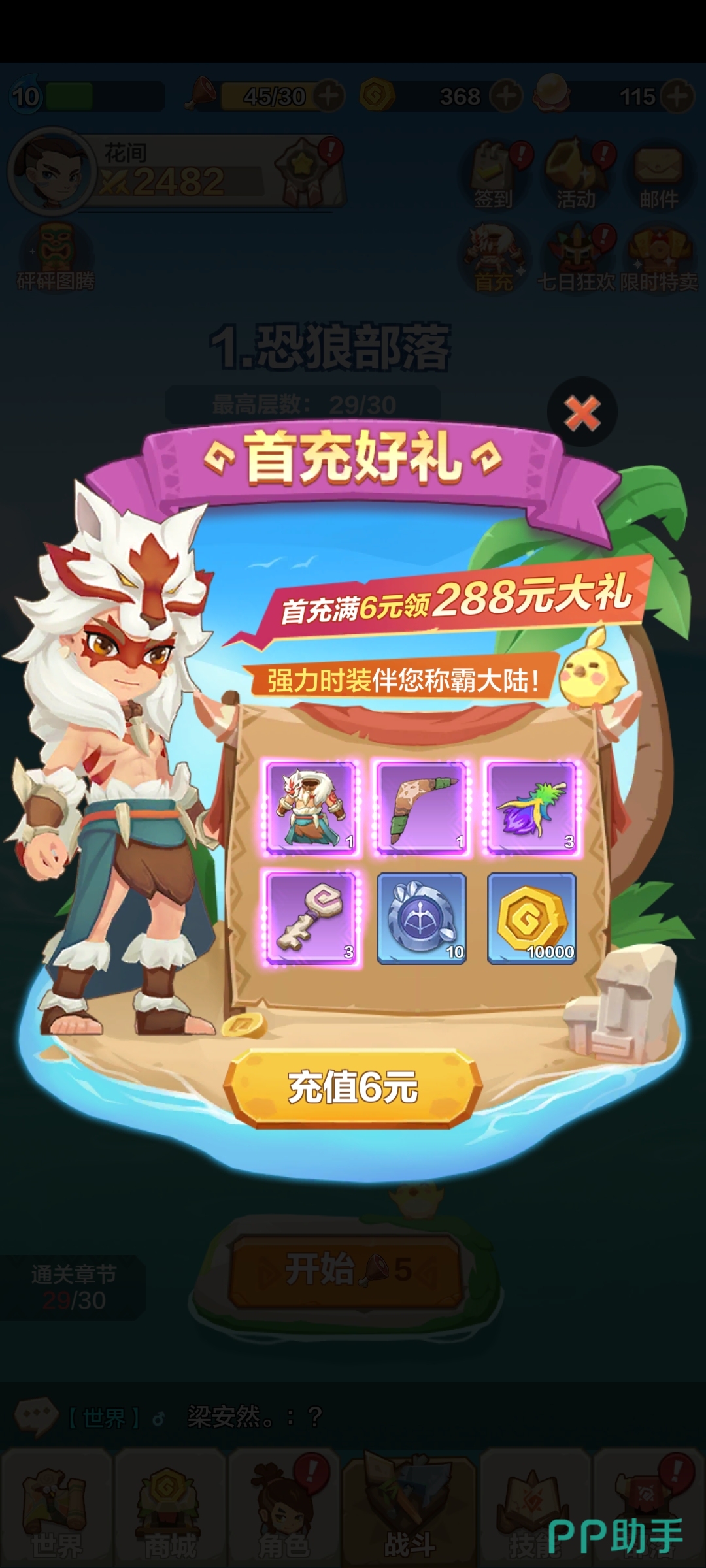 对于首充玩家来说使用首充赠送的恐狼血性装备和兽骨镖可以轻松的通关,因为这两件装备带来的属性加成包括:攻击力+150、生命上限+600、攻击力+180,这三个属性的加成可以帮助小伙伴们快速完成早期推图任务。
