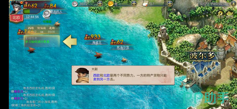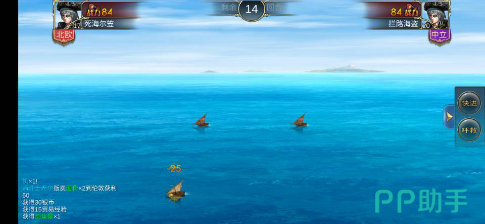 雇佣中级佣兵可击败战力高1.3万的海盗;钓宝后速回欧洲避免被劫。