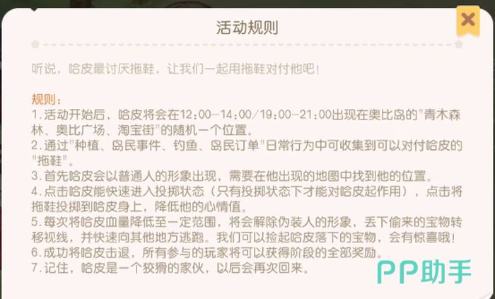 首先也是最重要的是活动需要在周六周日完成,也就是在这个时间段才能找到伪装的哈皮,首先要去收集投掷物品,作日常的钓鱼订单等活动可以获取,收集足够就可以触发了。