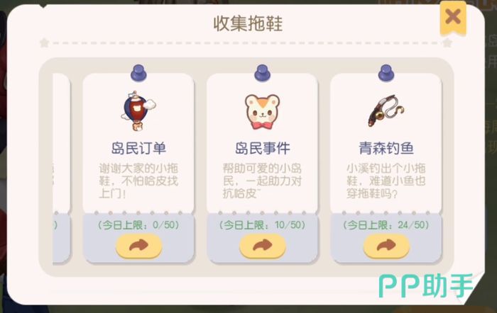 然后就是订单和居民委托了,玩家可以接受各种送货订单,完成订单需要的货物就可以获得拖鞋作为赠礼,同理居民委托也是一样,看玩家喜欢哪种方式自己选择吧,