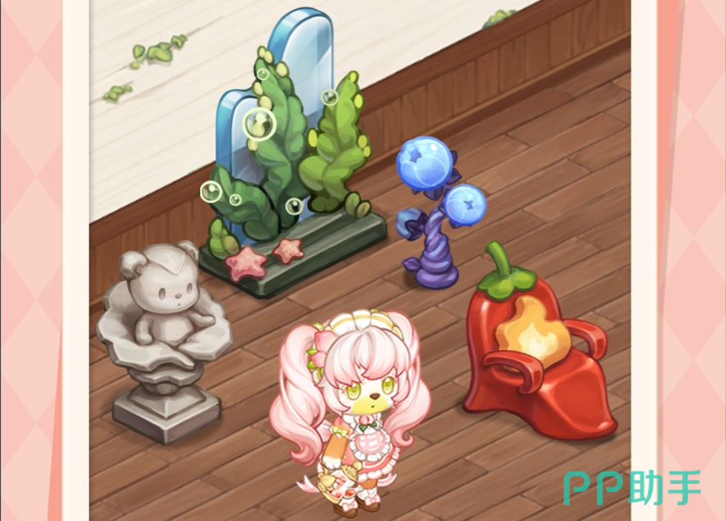 想要获取这次出场的服饰还有家具的方式很简单,和之前的一样是在特定界面进行抽取即可,这里需要抽取的装扮有两套,分别是以桃子为主题的粉嫩款,粉色的双马尾配上可爱的围裙,手中还持有一个茶壶,看写来非常香甜。