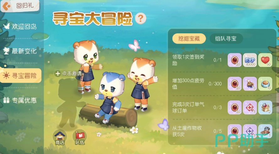 首先第一个更新的是这个“回归礼”活动,该活动是针对老玩家回归所提供的一个福利,里面总共有“欢迎回岛”,“最新变化”,“寻宝冒险”和“专属优惠”四个部分,其中前两者主要提供了见面礼和一些版本变化相关的信息,可以帮助老玩家更顺利的融入当前版本环境。