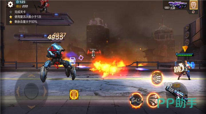 喷射器主要是针对大范围的小兵,伤害并不高无法打出像样的爆发。在boss战中很不占优势。所以这关最好的武器还是选择突击步枪,突击步枪推荐l-9雷霆步枪,m4a1奔雷,黄金ak步枪这几把。