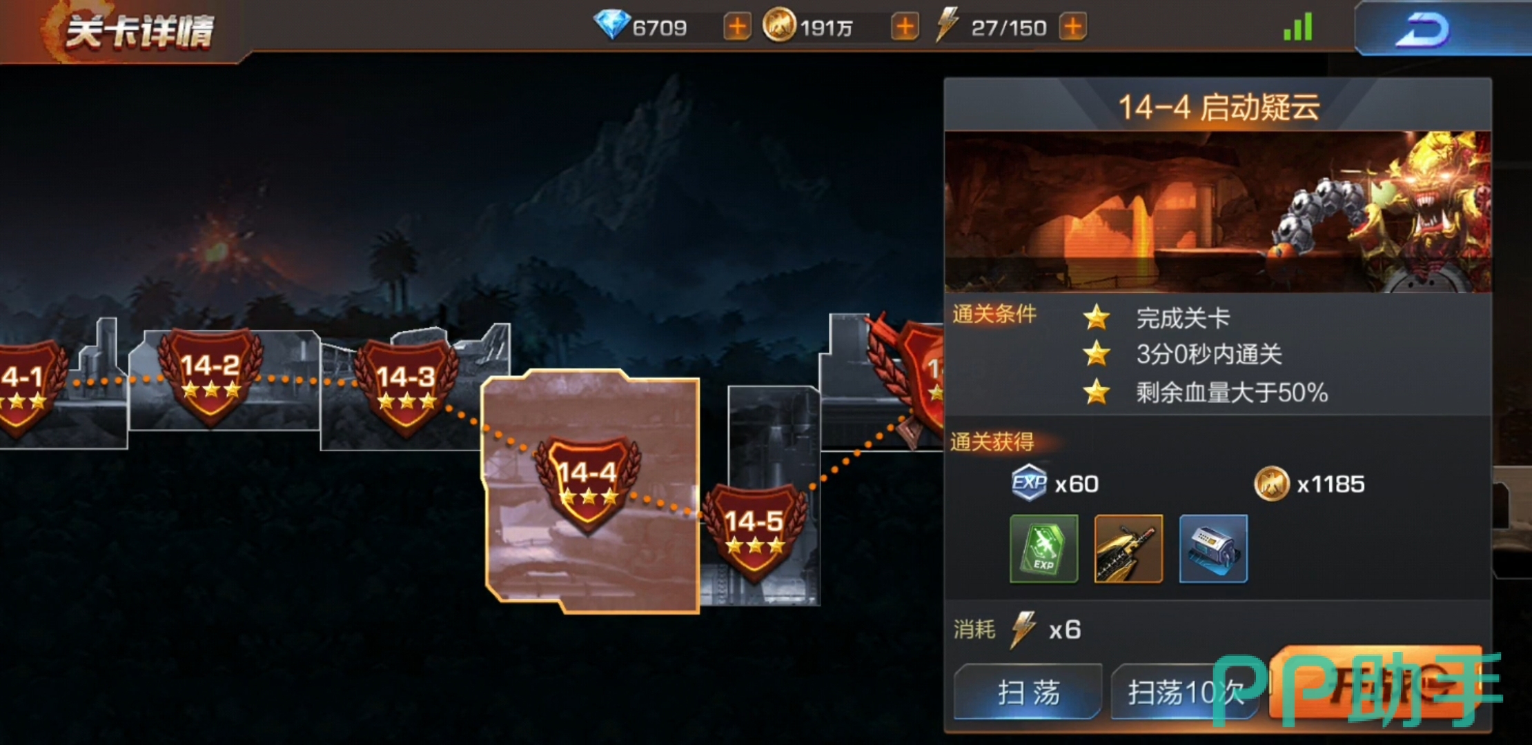 这关是第十四章的boss关,难度不高,但是boss伤害很高,玩家很容易被秒杀,下面小编就介绍一下如何通关。首先进入选择关卡界面,选择第14-6关。