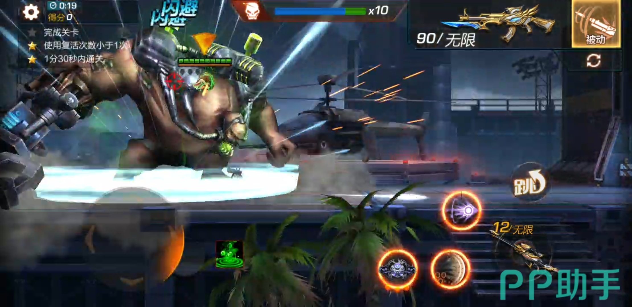 在面对最终BOSS时,大家要注意发挥出TVC加特林这类远射程武器的优势。当玩家站在离BOSS较远的位置时躲避技能是比较轻松的,玩家可以站在这个位置使用加特林对BOSS进行疯狂地扫射。