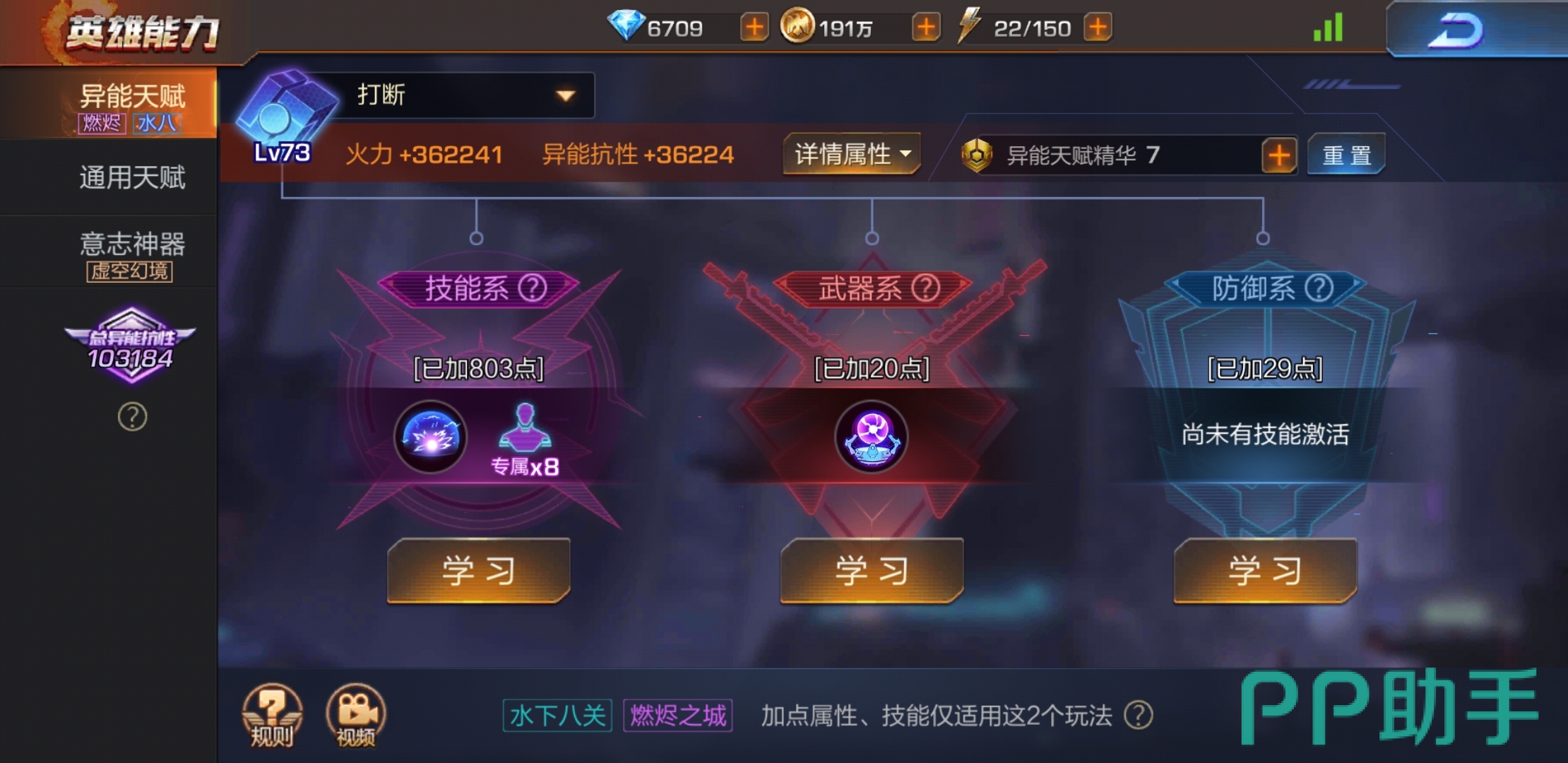 018拥有着此游戏极少的位移技能,生存能力至少是比其他英雄要高,所以天赋主要要加在技能系上,防御方面可以不用太多。018主要是靠技能输出,所以技能系是最好选择,甚至武器系都不用点太多。