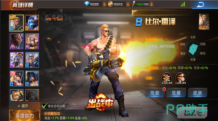 小编为大家推荐的英雄是比尔,比尔的两个技能全部都是群体技能。他的技能爆裂飞弹对于空中和地面敌人全部有效,在本局中还可以针对BOSS的激光球进行轰炸。他的另一个技能G5手雷伤害惊人,可以对地面上的敌人起到清扫的作用。