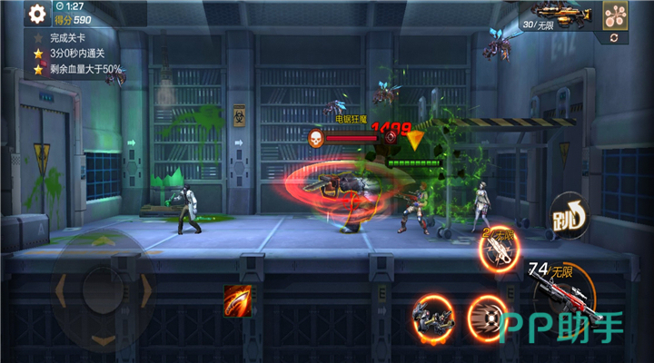 玩家在几经努力后终于来到了第六章,第六章的敌人主要是生化变异后的僵尸,僵尸的血量很高,若被近身还会对玩家造成大量伤害,所以玩家一定要与僵尸保持安全距离,不然后果很严重。