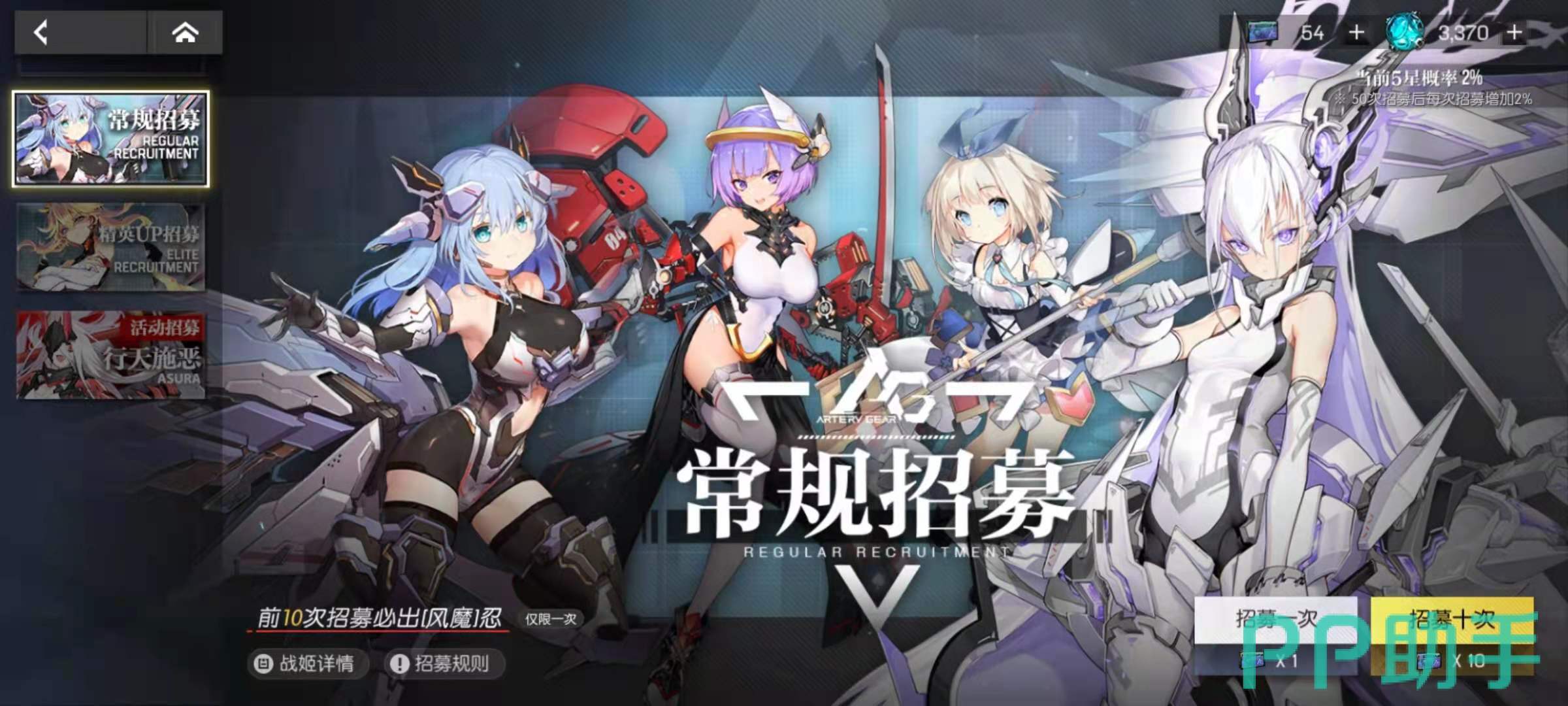 第一个需要氪金的地方是战姬的招募,在机动战姬聚变中,每个战机都有自己独特的技能,而且不同的战姬可以组成不同的阵容搭配,阵容在游戏中的重要性不言而喻。几个可以相互配合的战姬,可以起到比单打独斗要强得多的效果。所以在游戏一开始我们就要氪金去充值购买召唤券,然后召唤大量的高星战姬,这样就可以选择优秀的组成多只战队,从而适应各种不同的战斗。