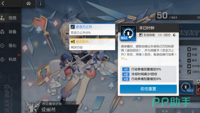 选择洛贝莉亚主要是取她的二技能延长debuff的效果,最后的辅助莫丽丝是签到两天就赠送的奶妈,如果玩家有4星的爱丽丝的话,也可以用爱丽丝来代替,爱丽丝还能够给自己队友多一个回合以及推条,是目前四星最强辅助。