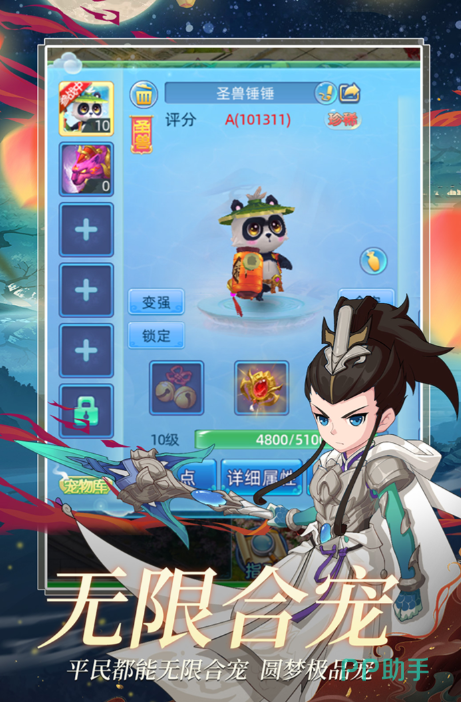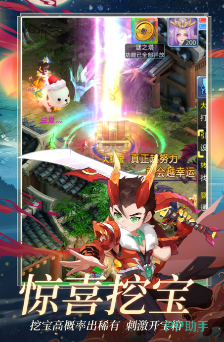 游戏画面精美,采用顶尖引擎打造,Q版人物造型,背景整体精美,仙界幻境实景呈现,