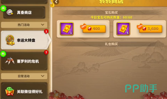 在游戏里对于装备方案也会进行新的调整,首先就是在大地图和峡谷对战的过程中,可以同步装备方案,这样玩家就不用再去分别选择装备,浪费大量的时间,在以前的版本中会有一个幸运大转盘活动,这个活动只能通过宝石参与,在全新的版本里面,幸运大转盘可以只消耗转转券,转转券获取方式会更加多样一些,可以直接选择用宝石兑换,也可以通过礼包获取,在游戏里可以选择消耗3600的钻石兑换5张转转券。