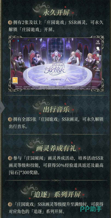 除了抽卡相关内容,本次活动还同步开启了“庄园秘闻”画灵养成任务。玩家通过培养活动SSR画灵,包括提升等级与技能,能够获得相应的经验道具返还和钻石奖励,这对于强化画灵能力以及积累基础资源都非常有帮助。