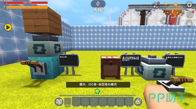 最先映入眼帘的就是我们最常用的转轴方块,可以建造旋转大门,还能够建造各种景观。为了让玩家可以亲身体验,还在储物箱中,布置了常规的木块,让本身动手建造。转轴方块不只可以向上、向前还可以向下,其他玩家用各种消息道具展示了转轴方块的影响。每个物品都设置了黑板标明,作者真的是用心良苦。