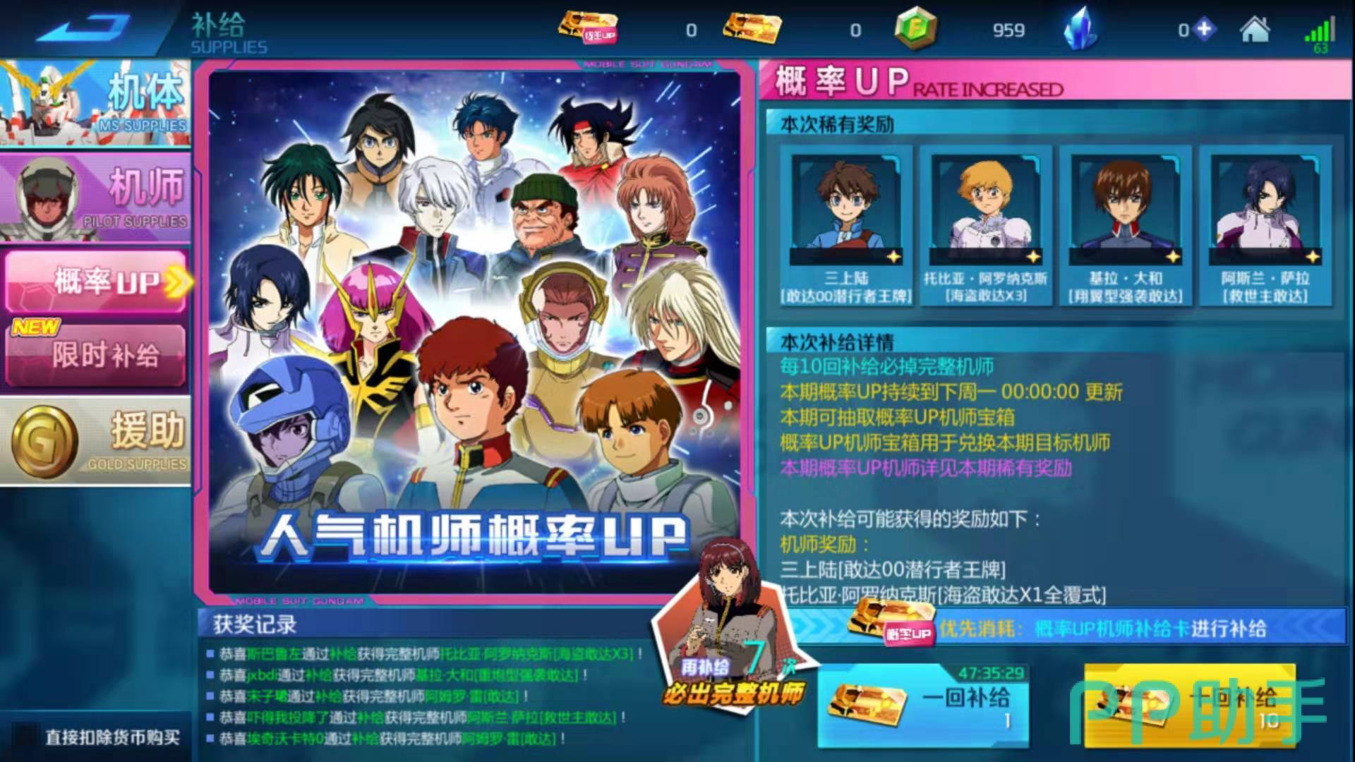 另外每周五~周一都会新增一个白送机体碎片和机师碎片的活动,也要记得参与一下,里面除了这两项还有改造合金和部件碎片等关键材料。