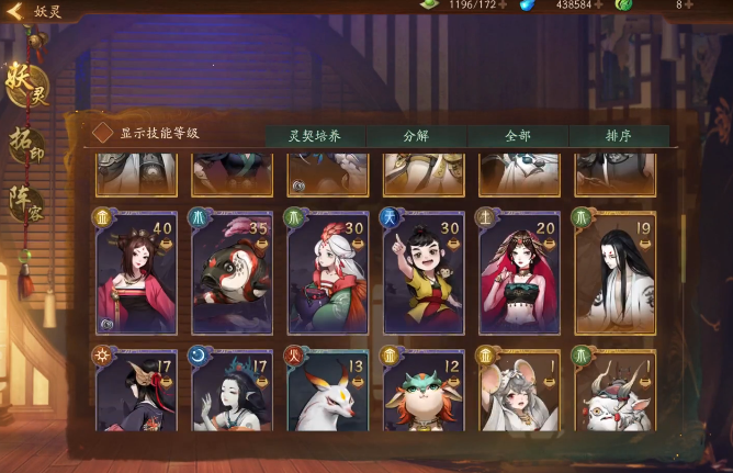 2. 进入妖灵界面后,可以看到已拥有的妖灵列表。
