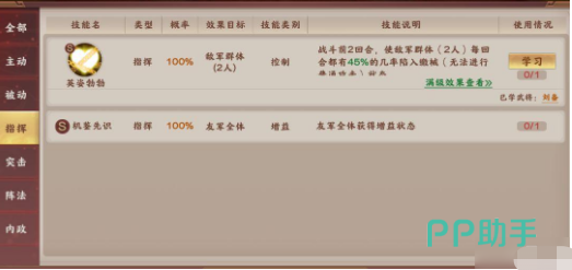 其中的传承技能等级一共分成了A、B、S这几个等级,其中的S等级技能是最高的,大家在进行传承的时候可以看一下这些技能可以造成的状态,其中有燃烧状态、混乱状态、以及破阵状态,还有劝降状态、溃逃状态、虚弱以及震慑状态,缴械以及沉默状态是其中最少用到的。
