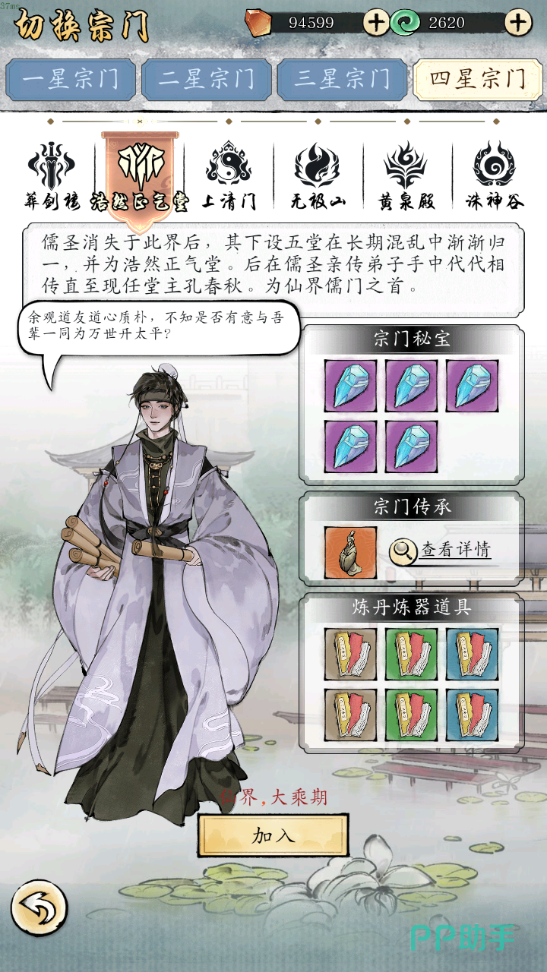 在这个游戏里面,玩家背叛师门之后,重新选择整体操作并不是很困难。它是一个成长过程里面,必须要经过的过程。在游戏里面这个玩法有很多的设定,按照实力分成了三个不一样的档次,一星一直到三星。在刚开始的时候,玩家只能选择加入一星的,而且每一个都有自己的特色。在加入以后就能够看到,还有其他的门派能够进行选择和查看。