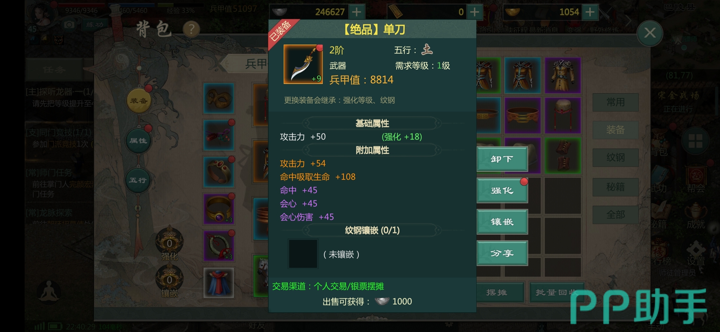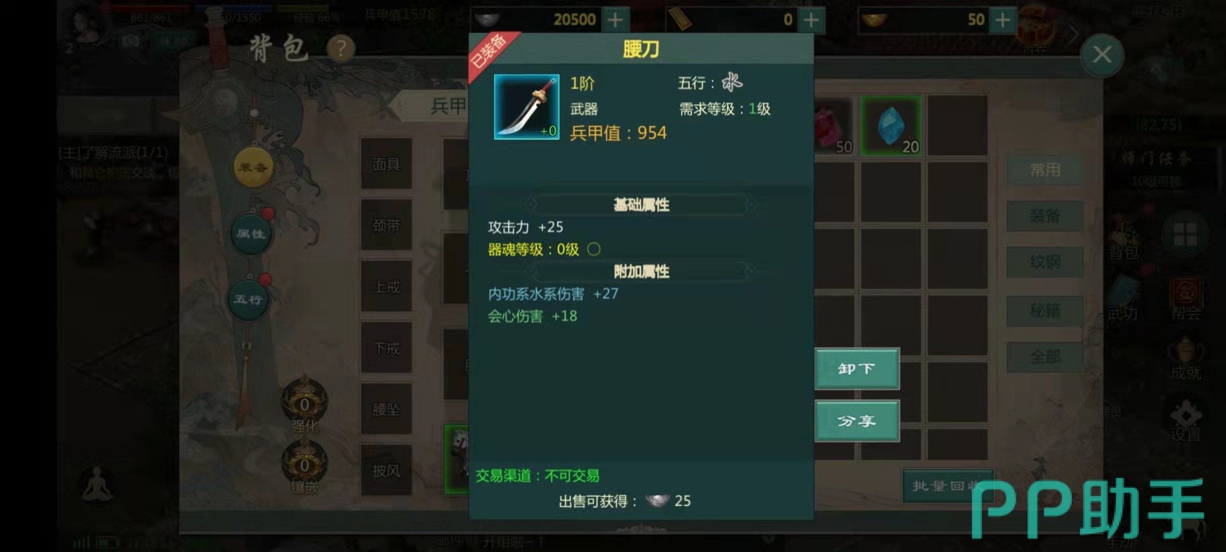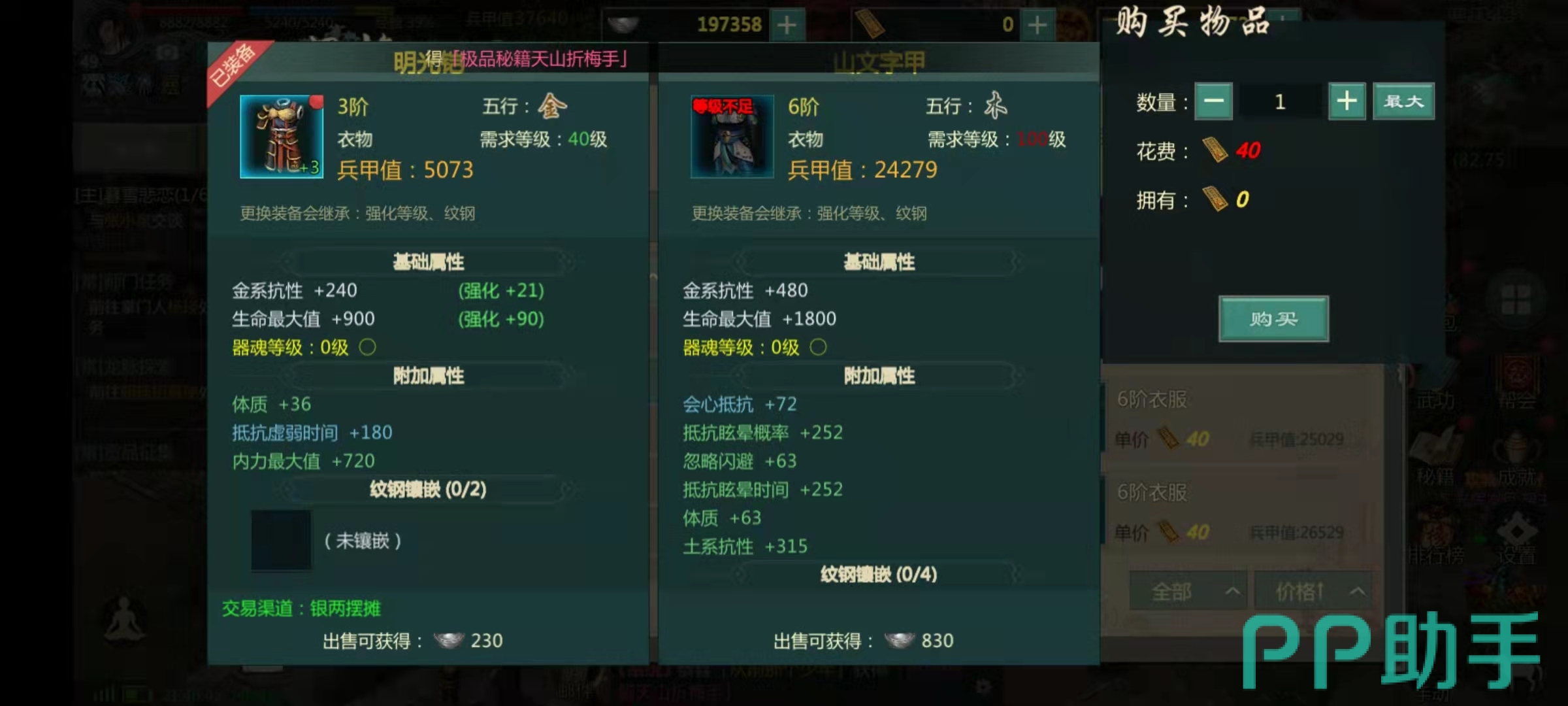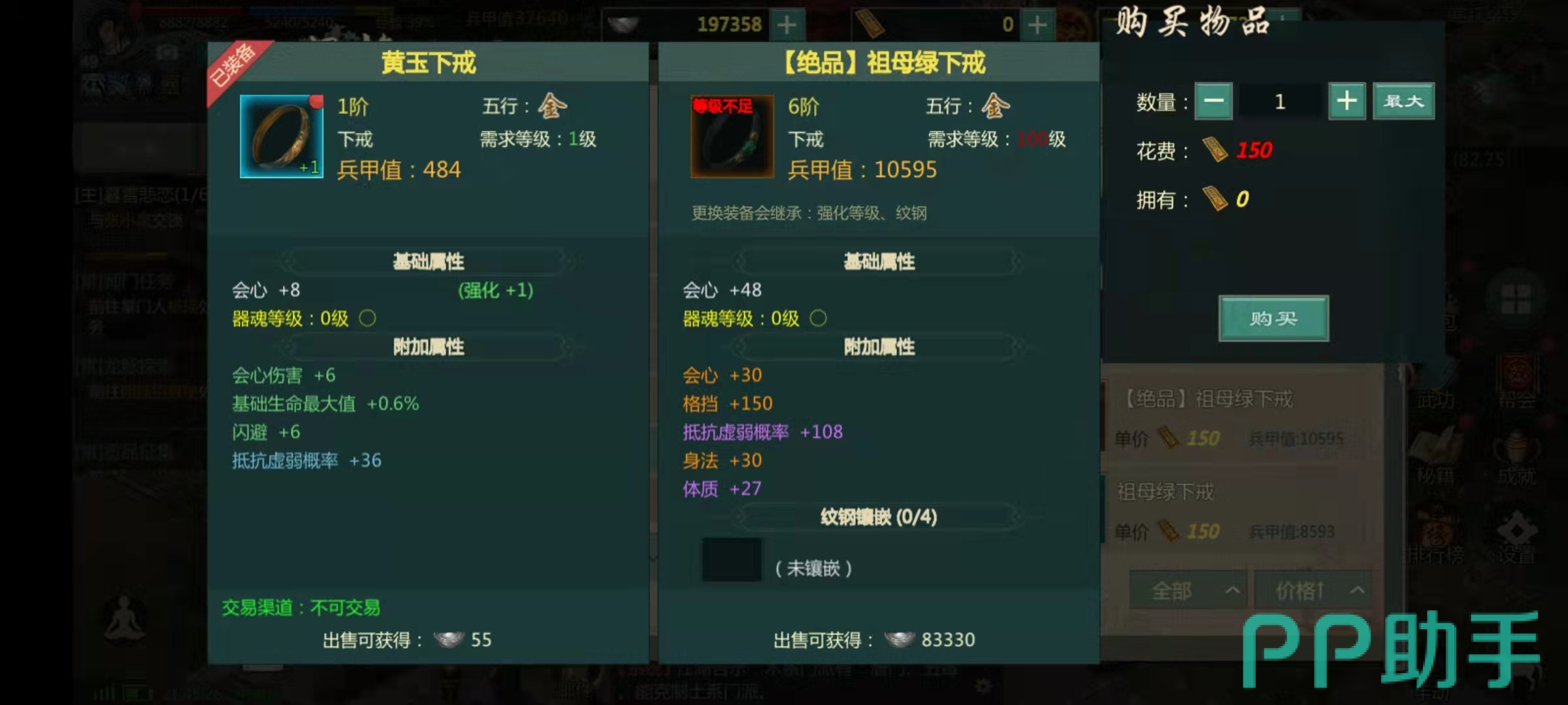 ⑤装备器魂:在商店使用银票购买,镶嵌在装备上,增加角色潜能点。