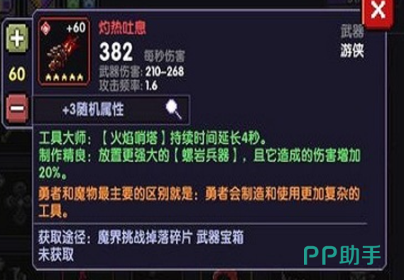 这些武器、装备等选择都是需要中期之后才能玩的,而且火游侠的刷图速度绝不亚于战士,在一些Boss战上,攻击也是非常高的,所以小编建议玩游侠时在前期就要想好该如何去玩,而且天赋很重要!这里就不推荐天赋了,大家自行点就好,喜欢刷图就点刷图的,没有特定的天赋选择。